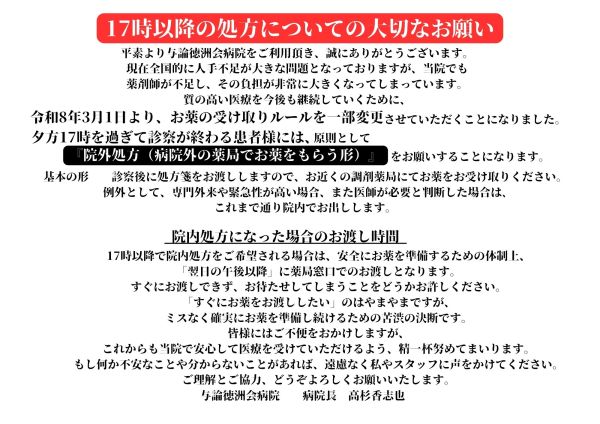 平素より与論徳洲会病院をご利用頂き、誠にありがとうございます。