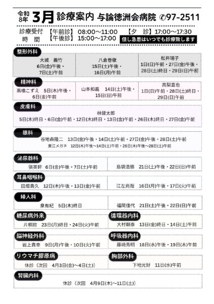 交通機関やその他の事情により、急遽、休診となる場合がございます。
